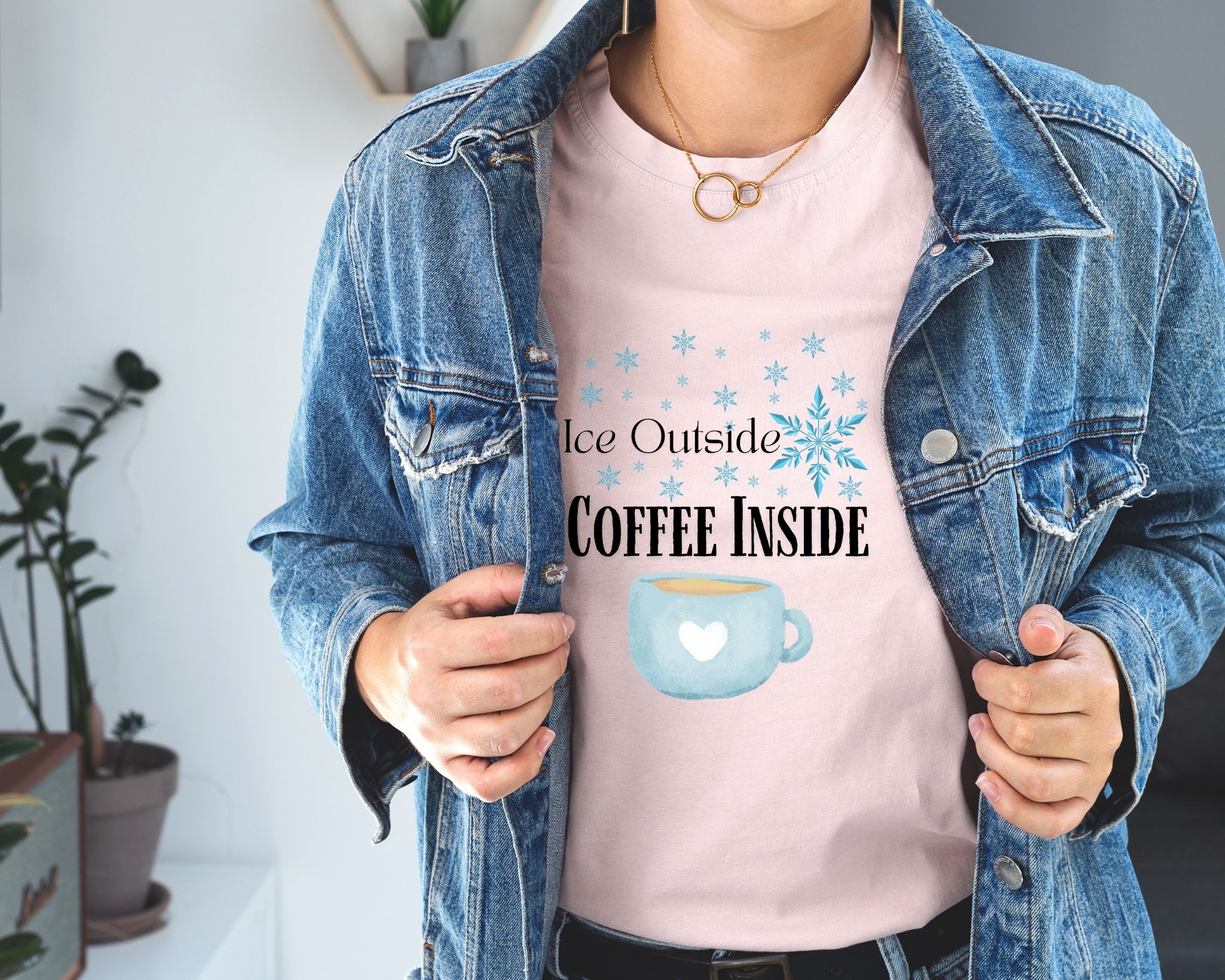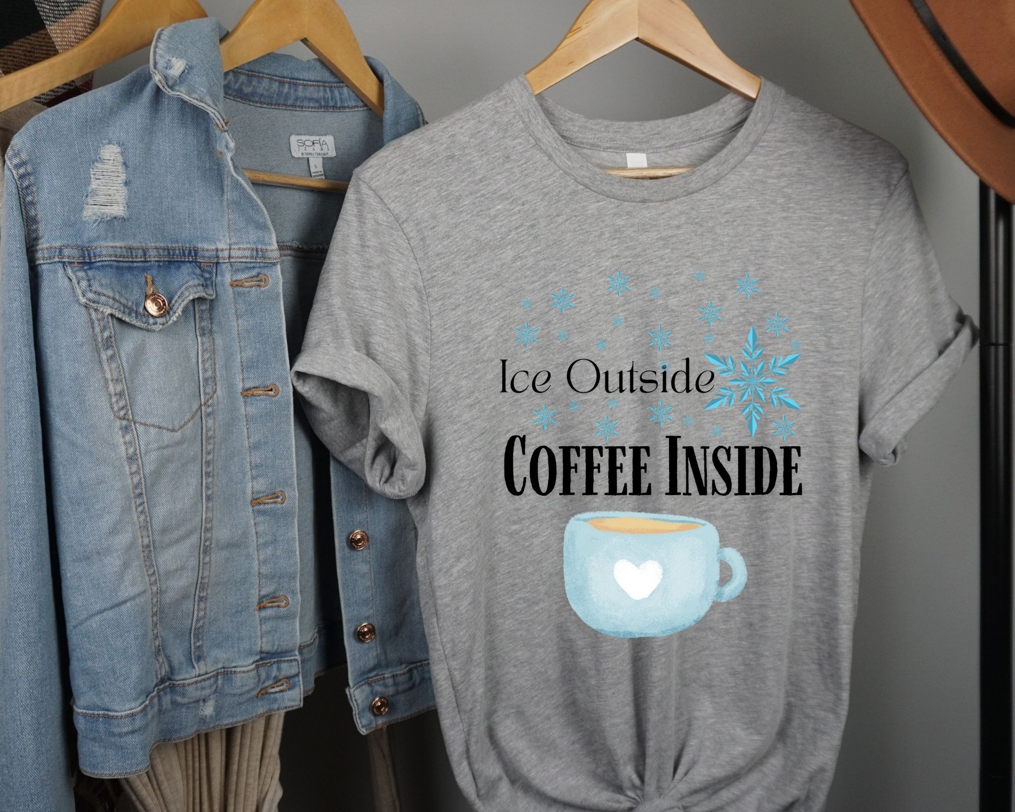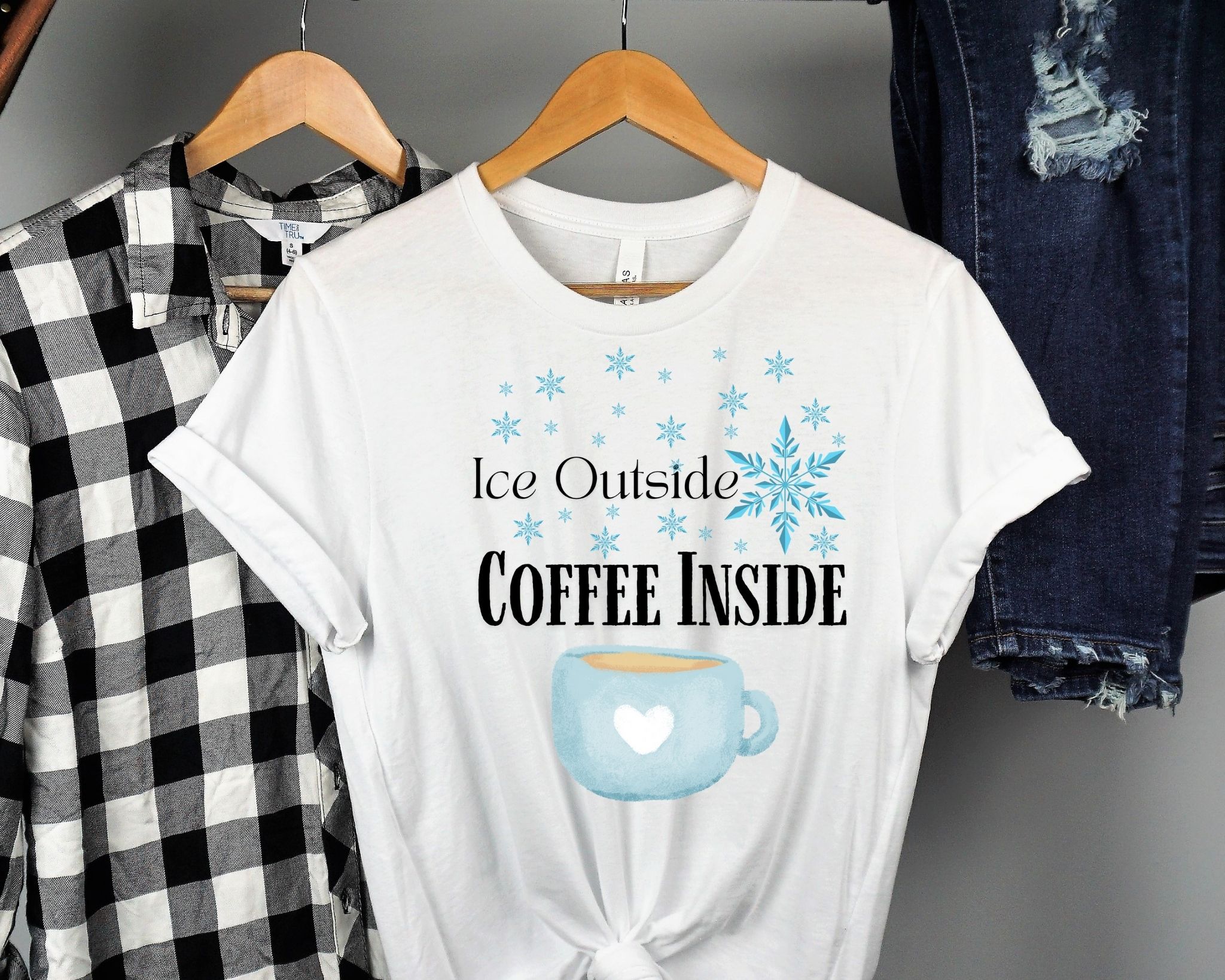 Looking for the perfect coffee lover t-shirt that speaks your style? Our Ice Outside, Coffee Inside tee is designed for coffee enthusiasts who know that a warm mug makes any cold day better. This shirt combines cozy vibes with a fun, eye-catching design featuring a steaming coffee cup and delicate snowflakes.