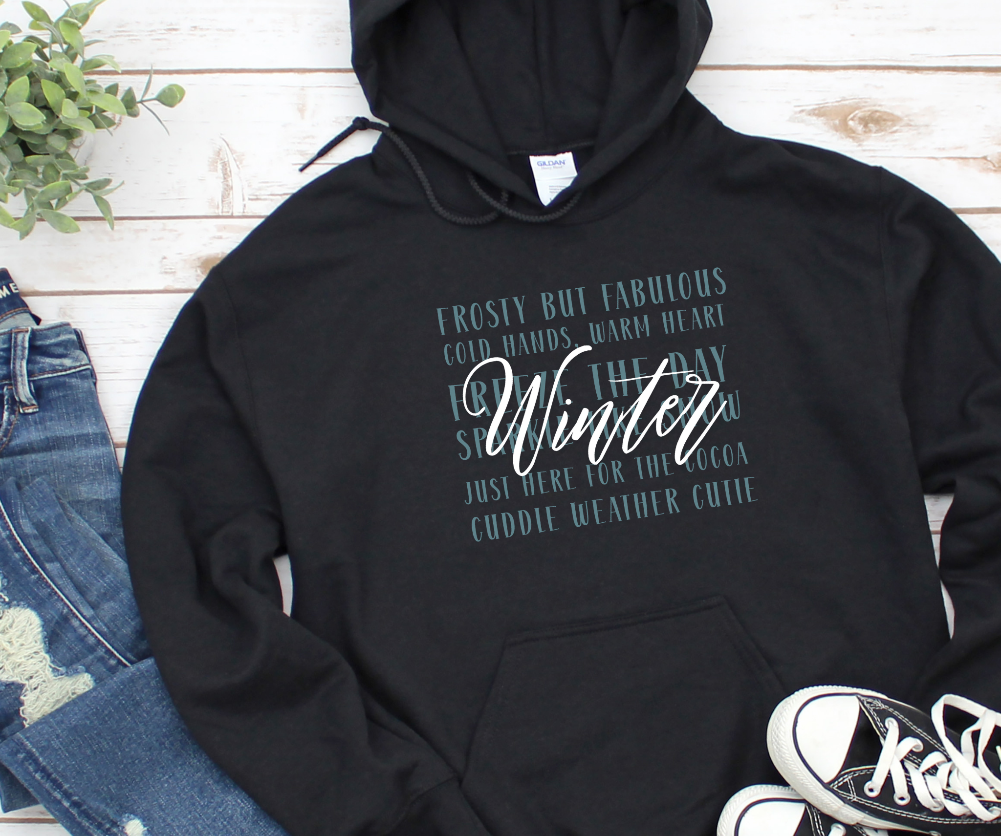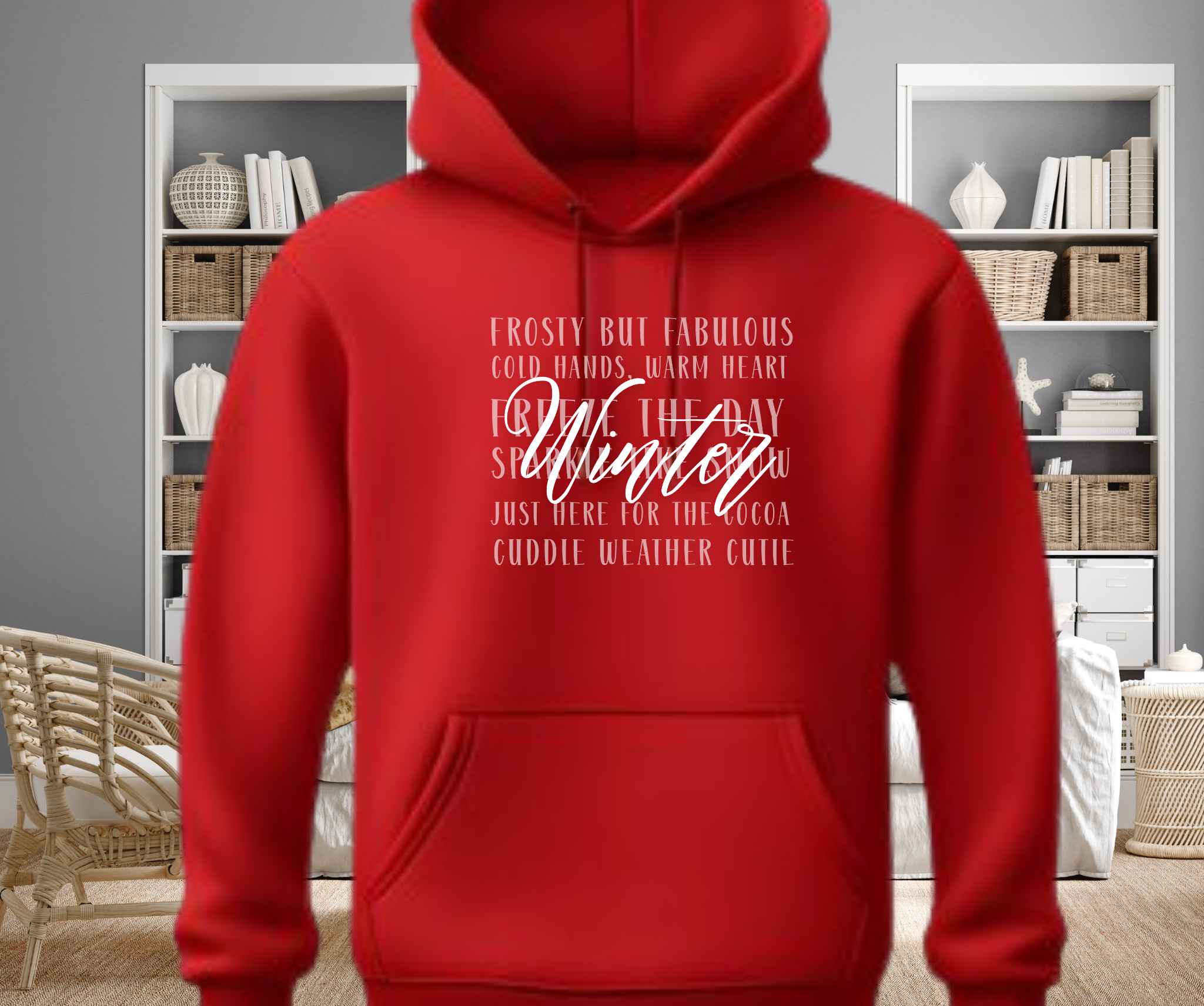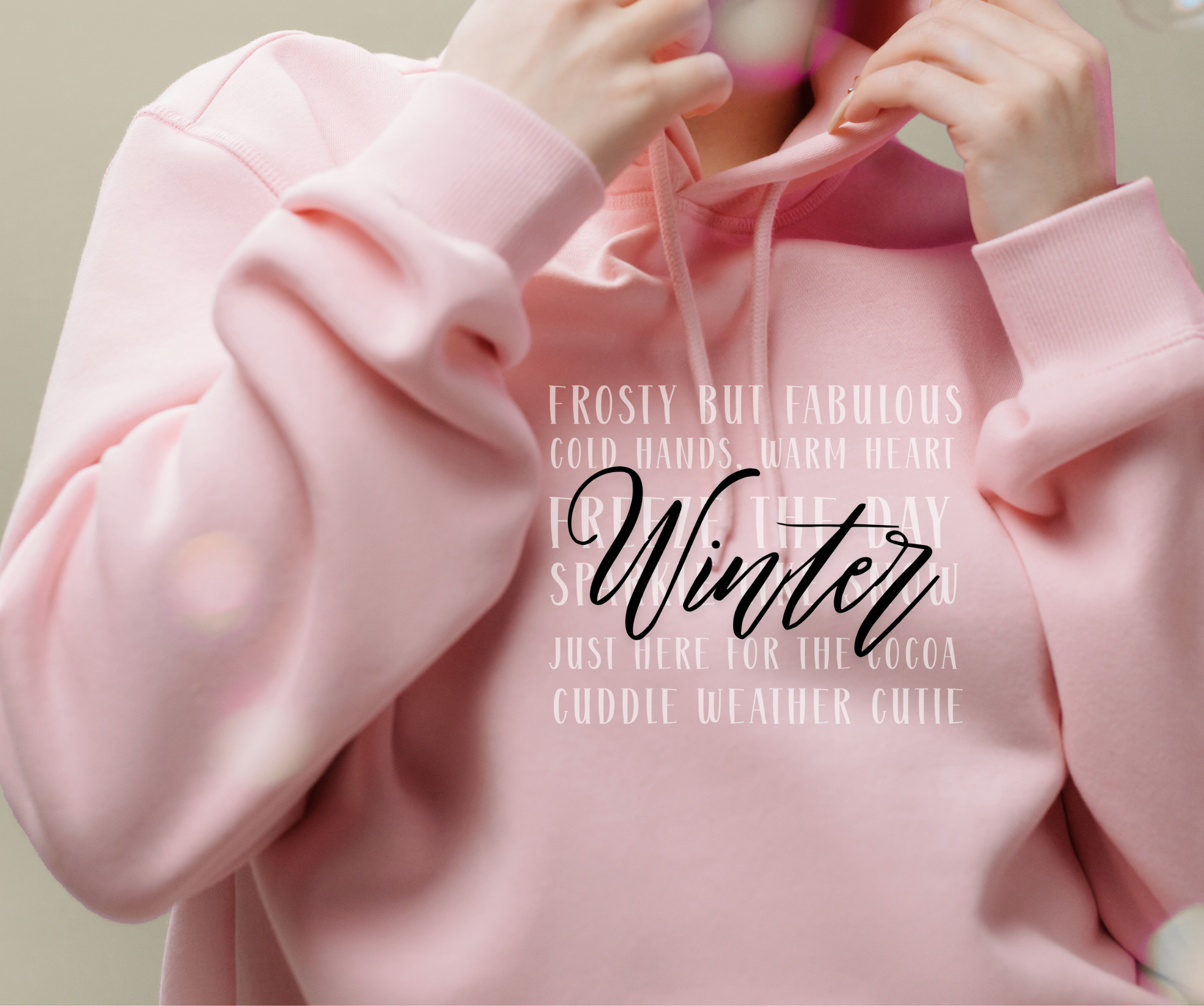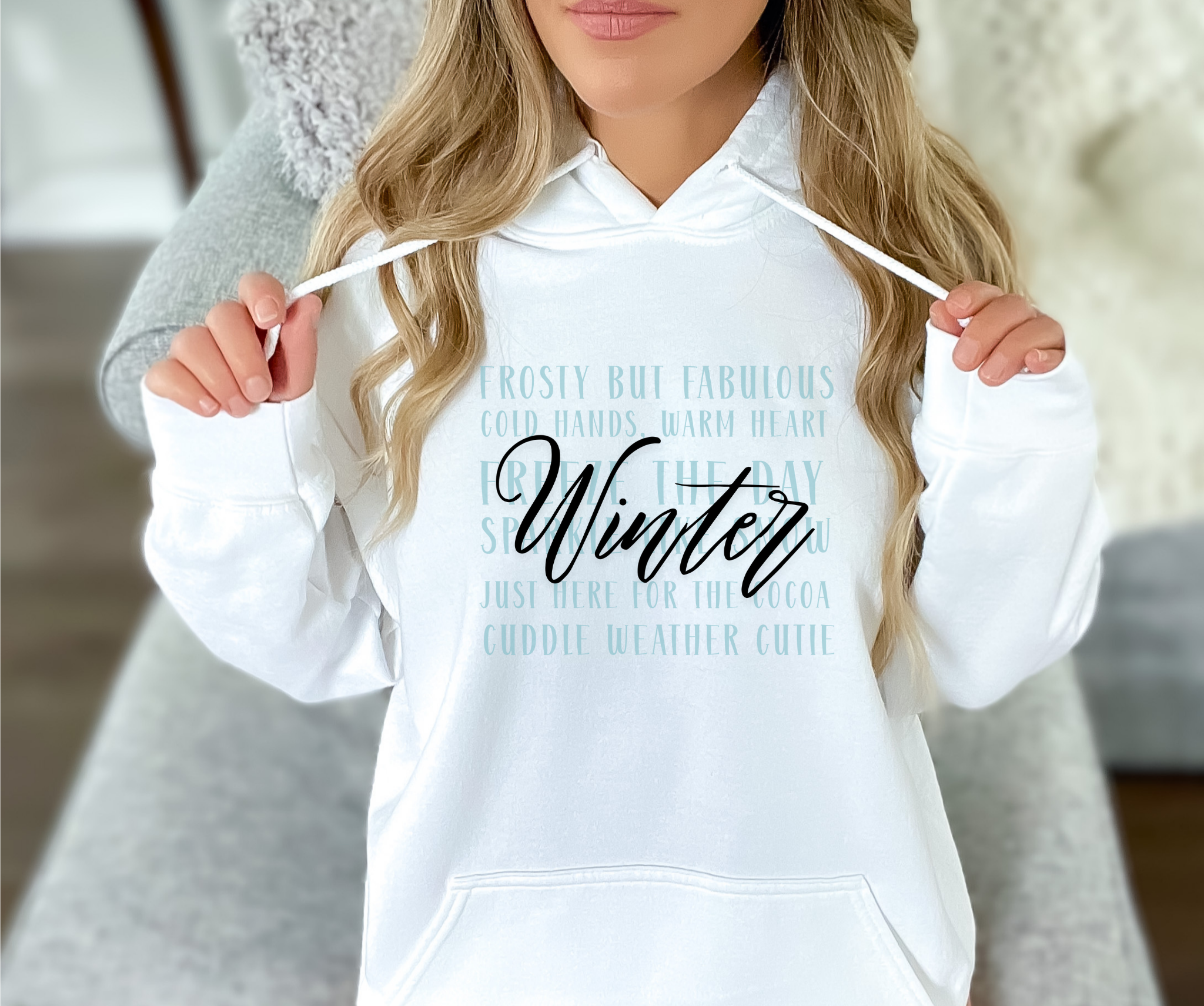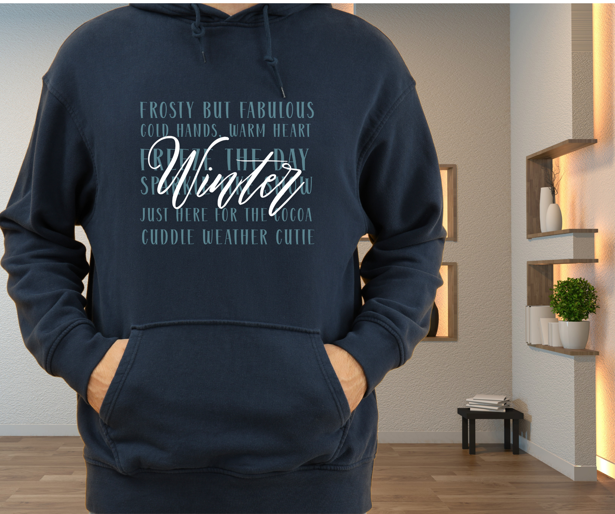 Wrap yourself in cozy comfort with our Winter Word Collage Hoodie! Designed with playful seasonal sayings such as Cold Hands, Warm Heart, Sparkle Like Snow, and Just Here for the Cocoa, this hoodie is more than just outerwear—it’s a mood booster for chilly days.